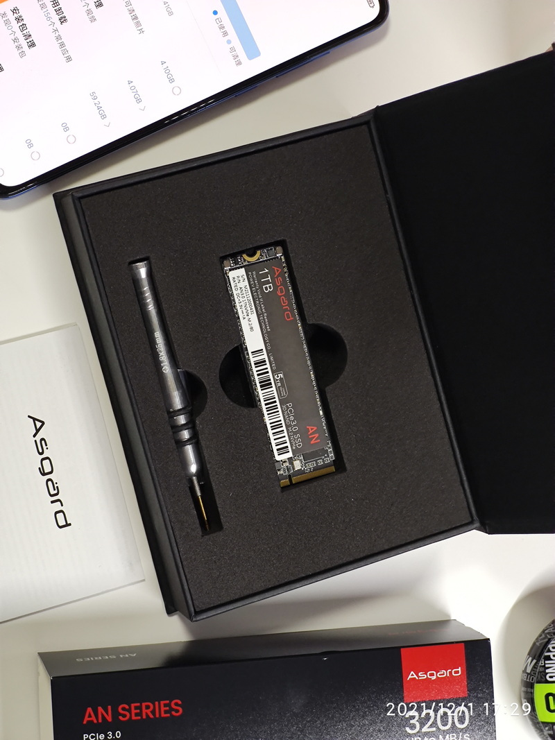 双11期间刚好要换掉一块512的升级1tb,新一代阿斯加特固态硬盘来的太及时了,不过我是到月底才抢到(用了JD PLUS的代下单功能,一检测到放货立刻替你下单并通知,15分钟内不付款就失效)。版本有点逗,AN3.0,不如写成AN3.5,要不然容易和旧版弄混了,这一版可是长江存储的新TLC 3D NAND闪存颗粒啊,这也是我选择它的重要原因!主控来自22nm的联芸MAP1202A,NVMe1.4协议,pcie3x4,HMB技术高速读写,读3300写3000,5年质保,纯国产牛13!包装有点豪华,配了一把蛮精致的螺丝刀,1tb是现在装机基本容量,别跟我说512够用,对我来说双m2位两个1tb还是不嫌地方多。用固态为的就是一个快又大嘛,有大的不选,没有后悔药可以吃。不过现在它家512gb的也没货了,看来跟我想的一样的哥们还挺多。反正我抢到了感觉挺兴奋。你上车没?