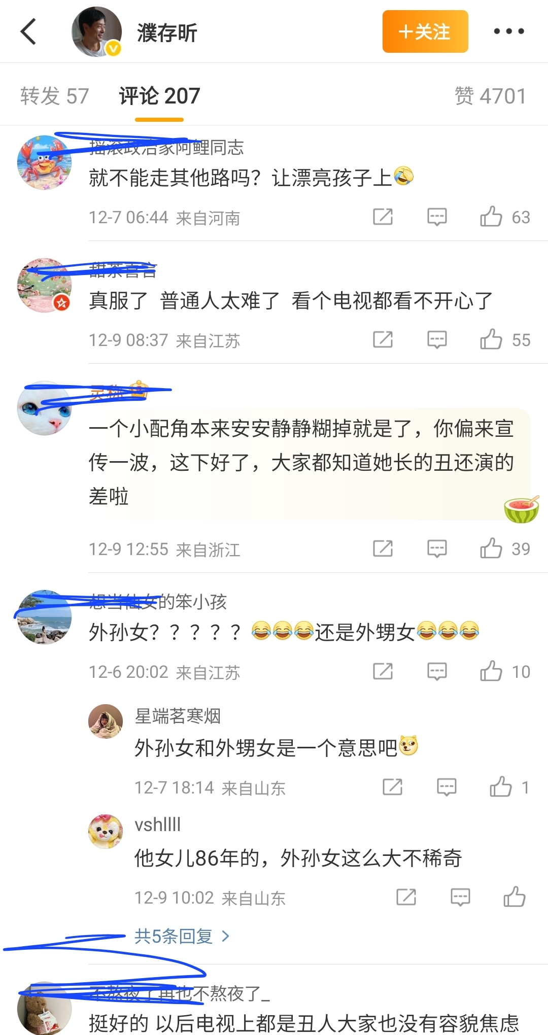 本来大家看在老戏骨的面子上,都点开视频给孩子捧捧场,结果大家一看这孩子演技和长相,实在是夸不出口了。
