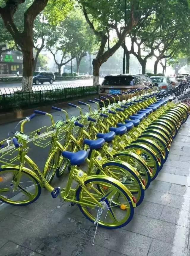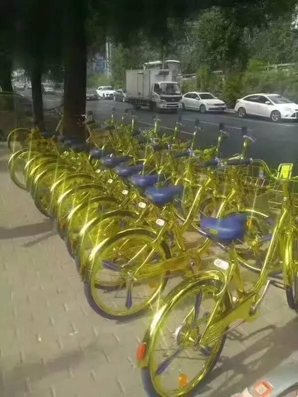 车身反光后金光闪闪,简直亮瞎眼!看来,再过两天,说不定玫瑰金、亮黑色的共享单车也会出现了……