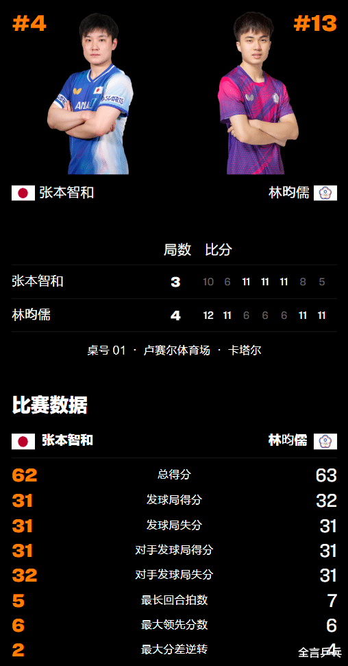 WTT多哈冠军赛:张本智和败北!苦战7局被淘汰,林昀儒进决赛争冠