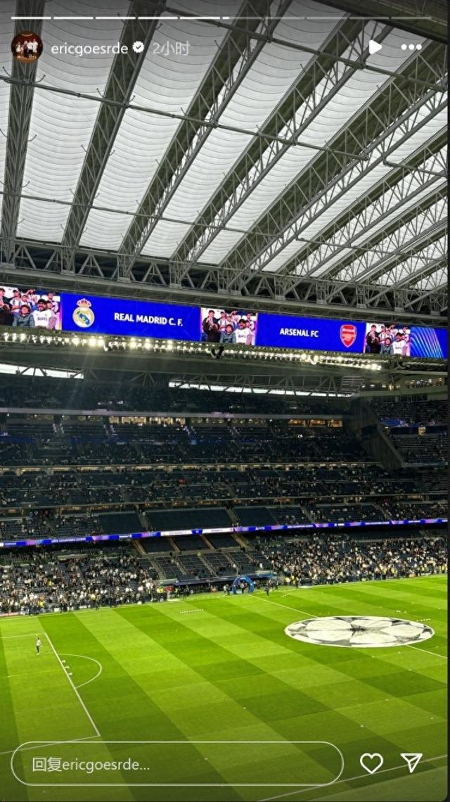 此役罗德里戈为皇马首发出战,他的父亲埃里克-戈斯现场观看这场重要比赛,埃里克社媒晒出伯纳乌的照片,为球队助威。