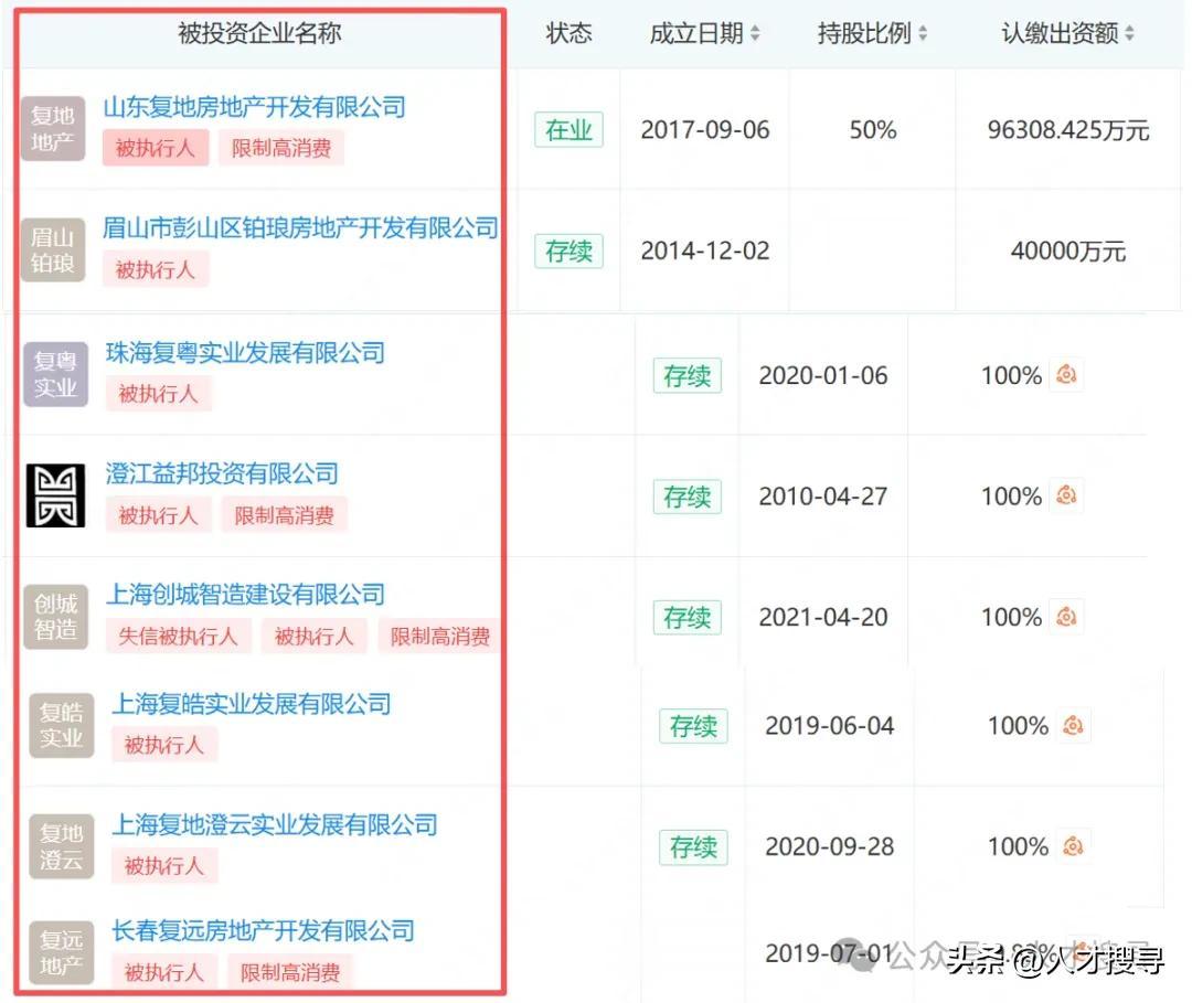 但是,目前的复地产发集团的情况也不太好,公司旗下大量的分公司成为了被执行人。