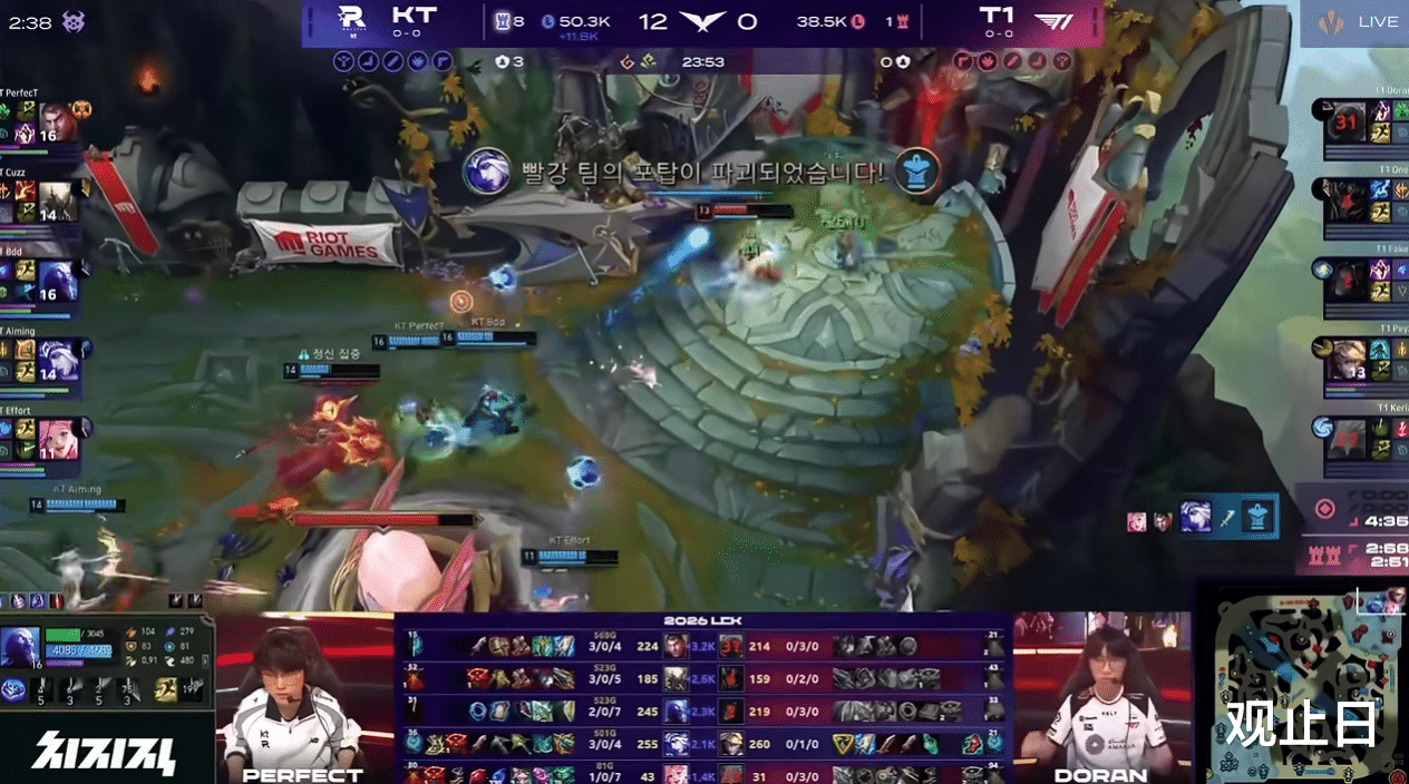 最扎眼的数据:人头12-0,T1被剃了个光头。