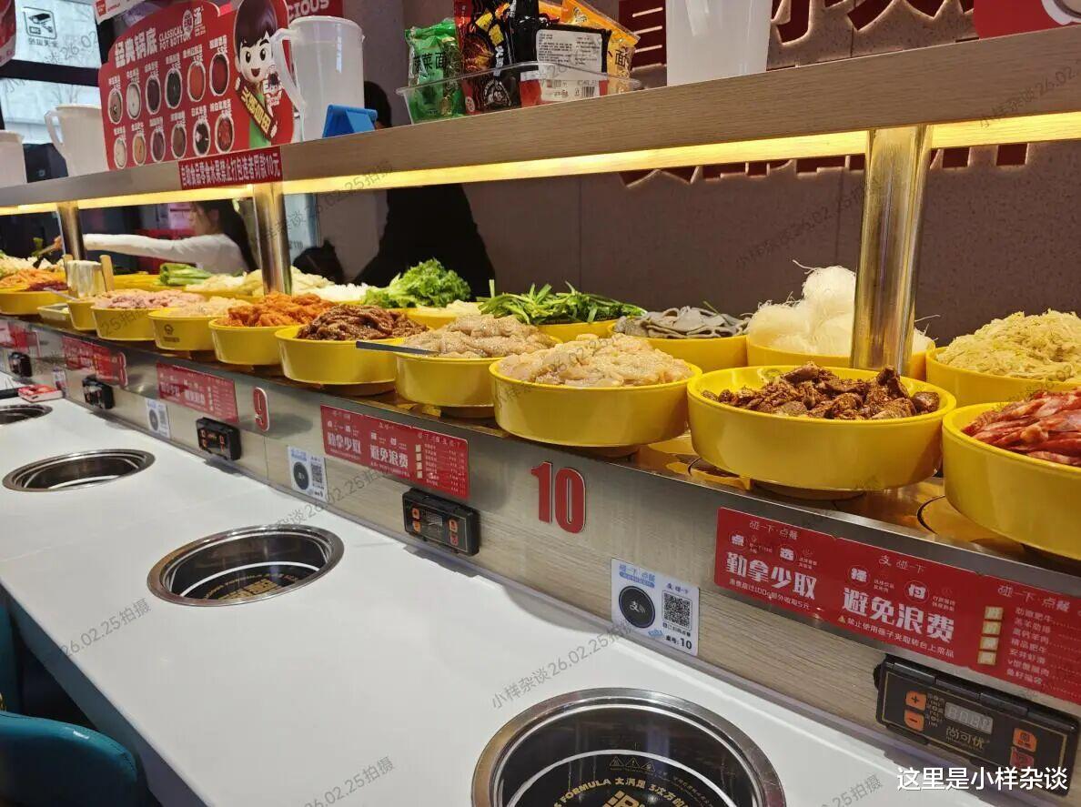 (某某自助小火锅沈阳建筑大学店2026年2月25日拍摄)自助盒饭想吃到热乎的,得赶上好时候,而火锅就随时都可以了,因为那是你自己想啥时候吃都可以得,但是普通火锅价格不便宜,不适合平时中午吃个便饭,而现在沈阳这种价格只有20多元的自助小火锅就弥补了这个缺憾。价格便宜,不包含牛羊肉这些,这些需要另外点,但是20多元的价格可以吃到几十种,有多种蔬菜,多种丸子,基本都是有鸭肠、鸡肉的,有的也有猪肉。有的还有水果,小蛋糕,冰淇淋。这个价格吃个小火锅还是非常有性价比的,顾客不少,这样的店现在也非常多,商场里,大学旁边,都开了很多家,大家觉得哪家店的食材种类多?