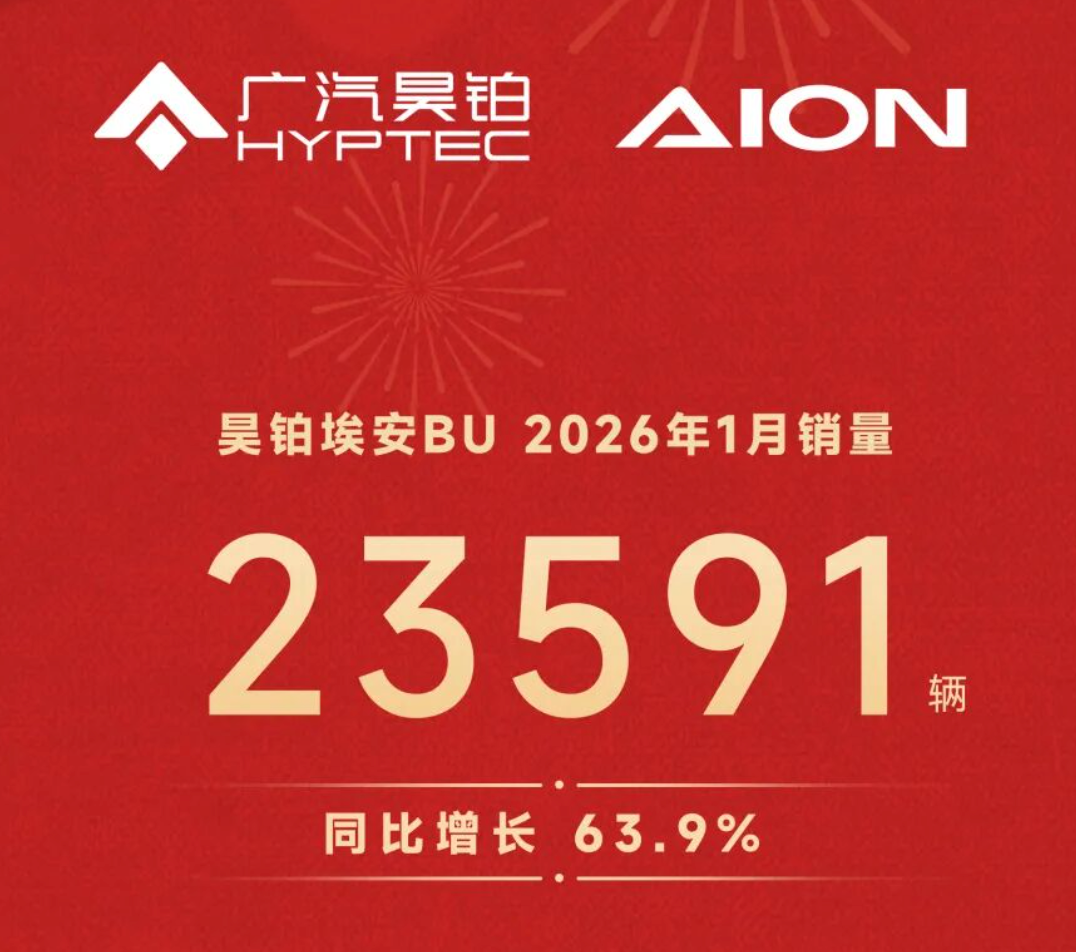 埃安i60上市首月销量破万,助力广汽埃安去年12月销量突破4万。2026年1月在行业春节前销售淡季,广汽埃安终端销量预计约2.5万辆,同比增长超90%。
