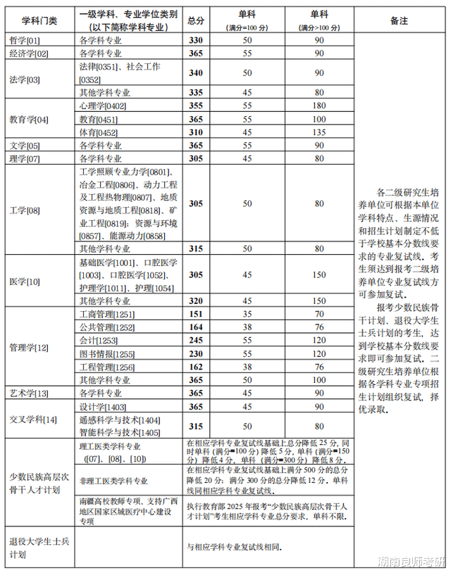 经学校研究生招生工作领导小组审议批准,现公布我校2025年全国硕士研究生招生考试考生进入复试的初试成绩基本要求: