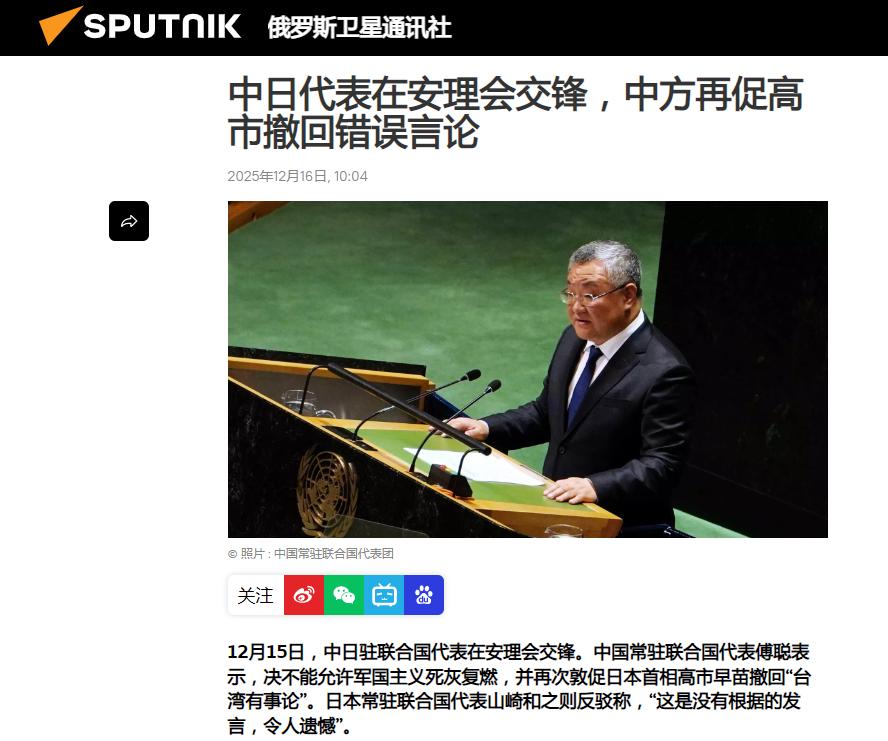 近日,联合国会议上中日两国代表再次爆发一场激烈交锋,日本首相高市早苗在台海问题上说了些不当的话,中国驻联合国大使傅聪直接严厉批评了她,说她这是干涉中国内政,还挑衅了战后国际秩序。
