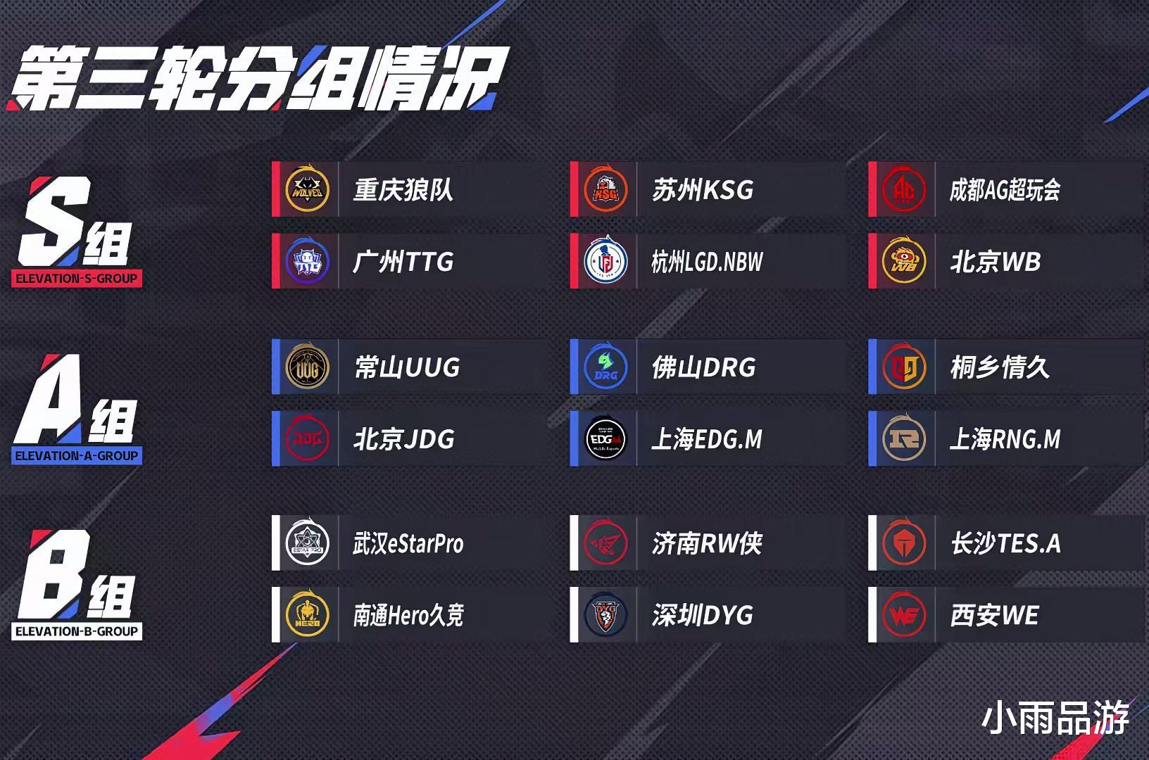 S组方面除了从A组升上来的LGD和WB之外,还有重庆狼队、苏州KSG、成都AG超玩会以及广州TTG。