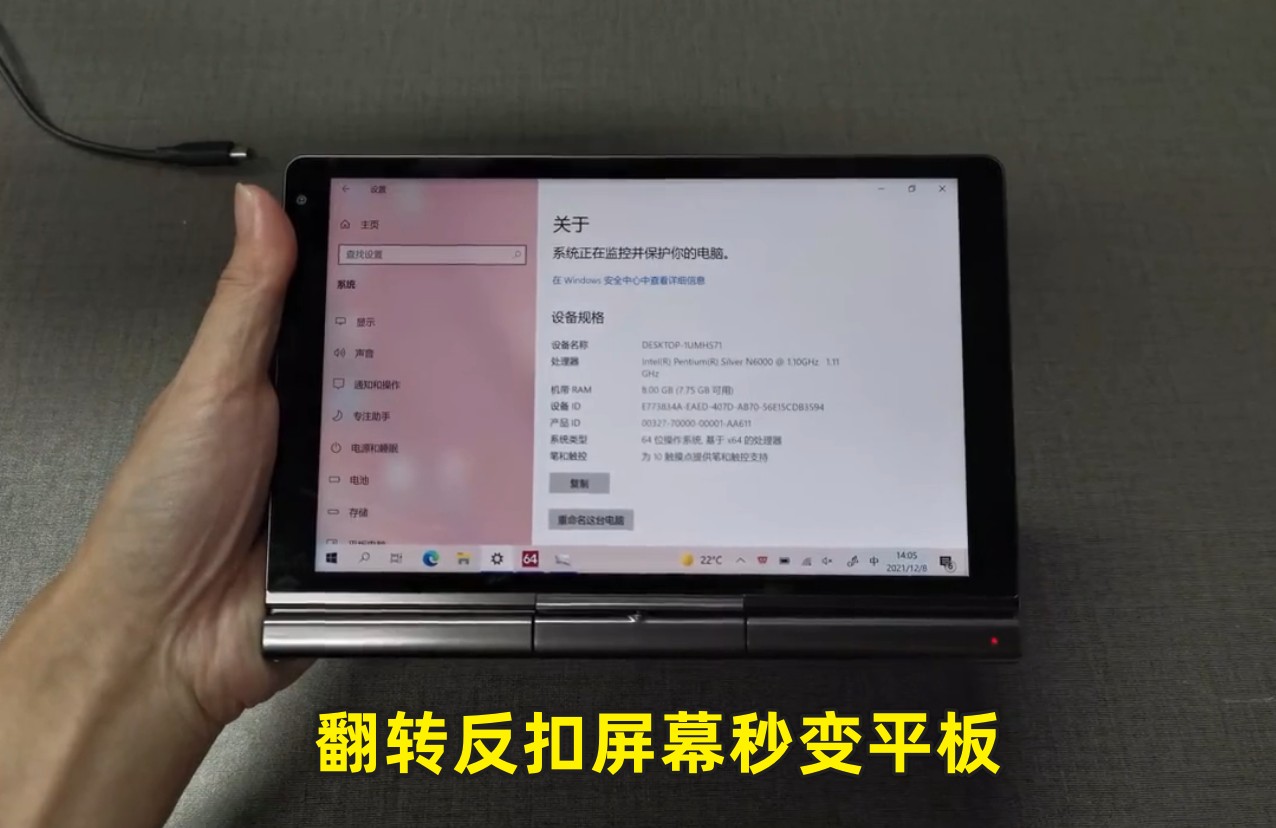 下面是从实测视频中截的图,图2~图5是游戏测试,图6~图7的反扣变平板(测试款为N6000低配版,图7可以看到windows系统参数),图8是在线看油管8K视频,图9是AE,PS等设计软件测试。感兴趣的朋友可以自己搜搜网上大V评测,可以确定是宝藏本子!