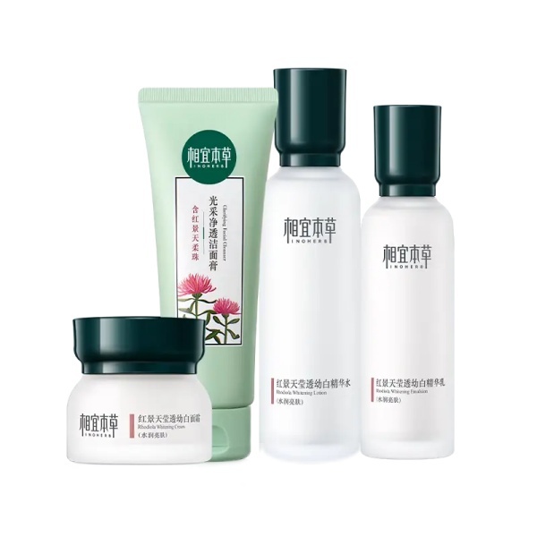 5. 相宜本草红景天护肤品主打的就是红景天成分,含有红景天、白芍药、积雪草等植物成分,可有效抑制黑色素生成、沉积,养护肌底,增强肌肤弹性,焕发肌肤水嫩。