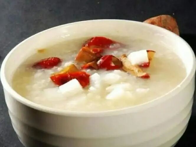做法:铁棍山药去皮切小块,和大米、3 颗去核红枣同煮 40 分钟,煮至粥变稠。