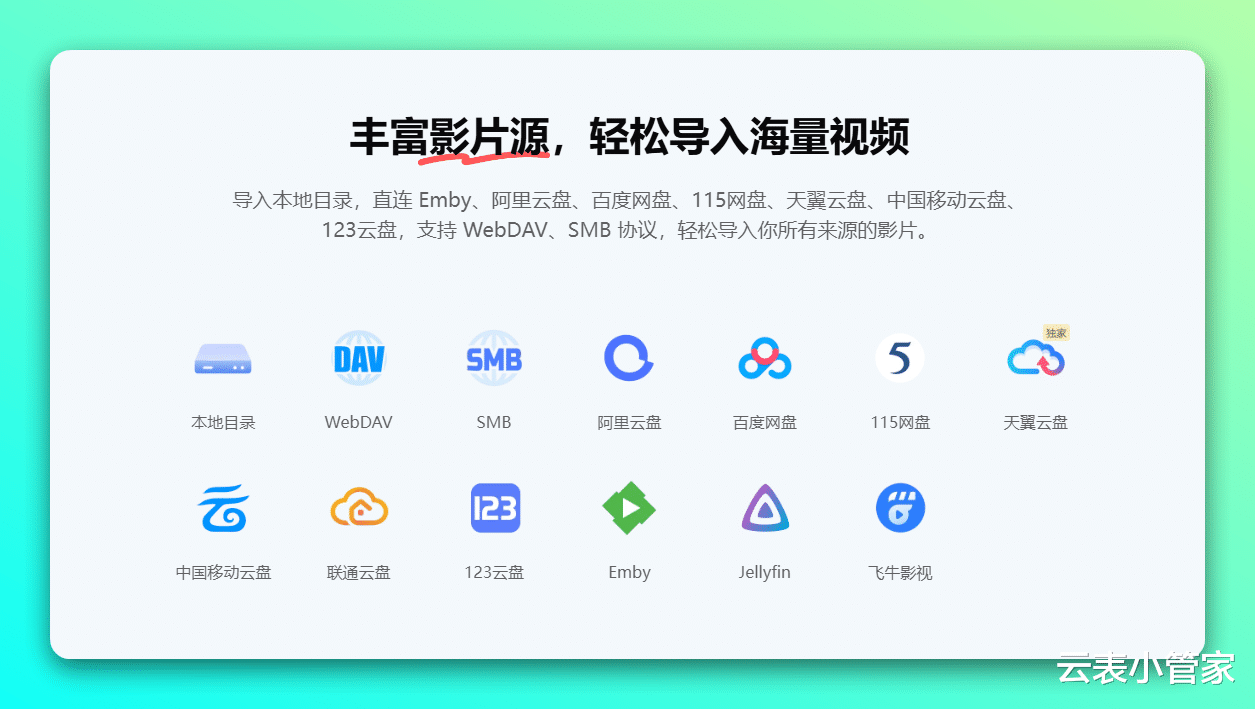 它不只是播放器,更是智能媒体库,能直连百度网盘、阿里云盘、115网盘等多个平台,不用下载视频,就能在线高速播放。