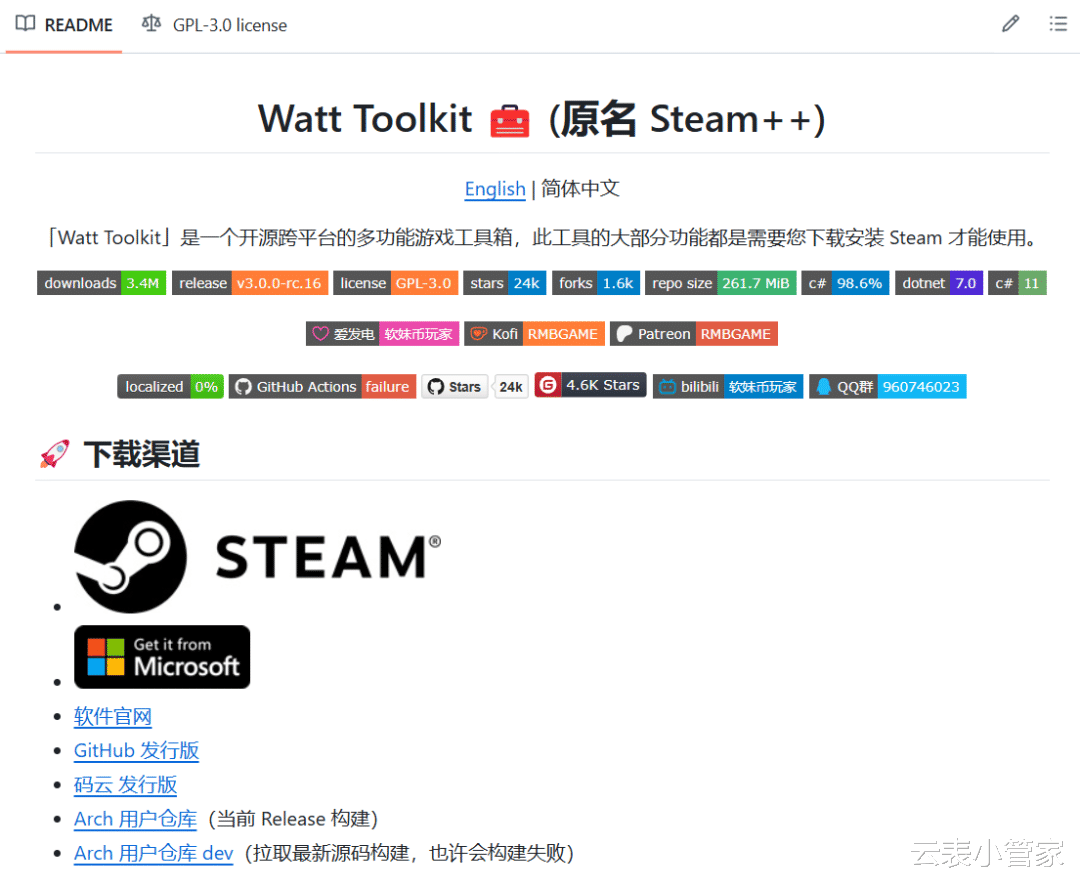 第二款,Watt Toolkit,以前叫Steam++,爱玩游戏、搞编程的朋友必存。它是开源软件,在微软商店就能免费下,不用注册,不用绑手机,全程无限制。
