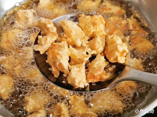 2. 炸制鸡块:锅中倒入足量食用油(建议使用耐高温的植物油),待油温升至六成热时,将腌制好的鸡块逐块下锅,中火炸至表面金黄酥脆即可捞出沥油备用。注意控制好油温和火力,以免炸糊或不熟。