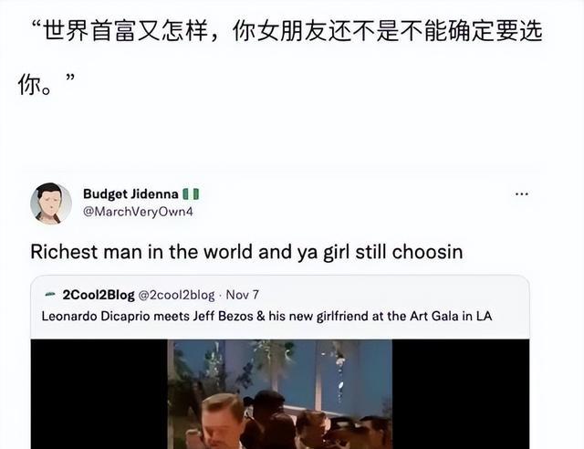 还有人幽默地提醒贝索斯:“原则一:千万不要把女朋友介绍给莱昂纳多。”