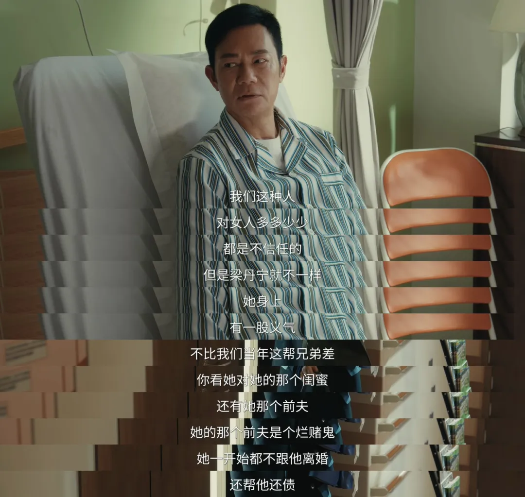 梁丹宁固然在前夫的事情上不够果决。但仗义是这个人物性格中最坚固的底色。在她与赵玫利益相悖的时候,是仗义维系了这段友情的纯粹;在沈默(张兆辉 饰)因病住院的时候,是仗义让她选择回到对方身边,几乎算计了所有人的沈默唯独对梁丹宁另眼相看。