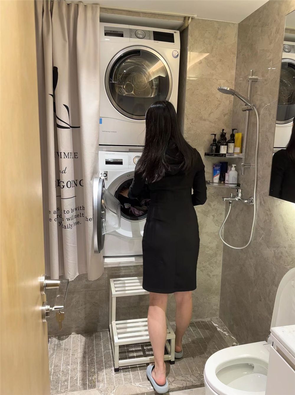 小台阶不用的时候,可以推到浴室的角落里,也不会占用空间让人觉得碍事儿,更何况,平时烘干机本来就不是每次都用,实际上用起来并不会太过繁琐。