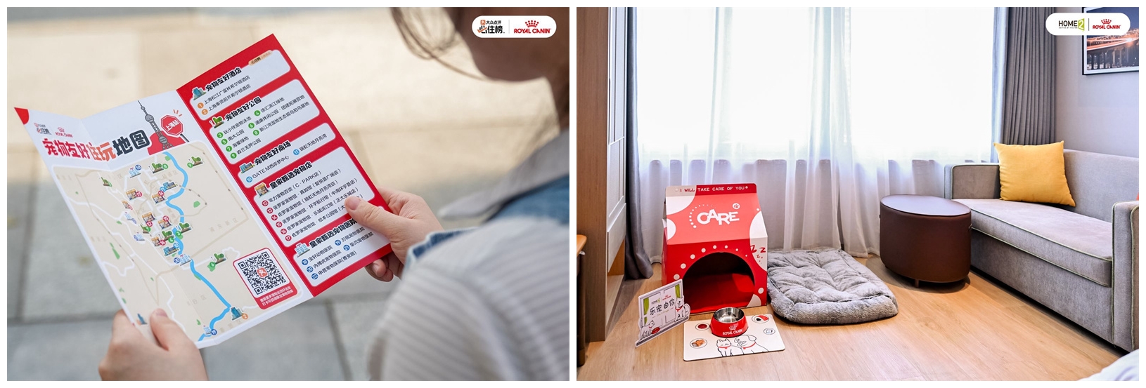 左:皇家宠物食品×大众点评“必住榜”推出“宠物友好住玩地图”