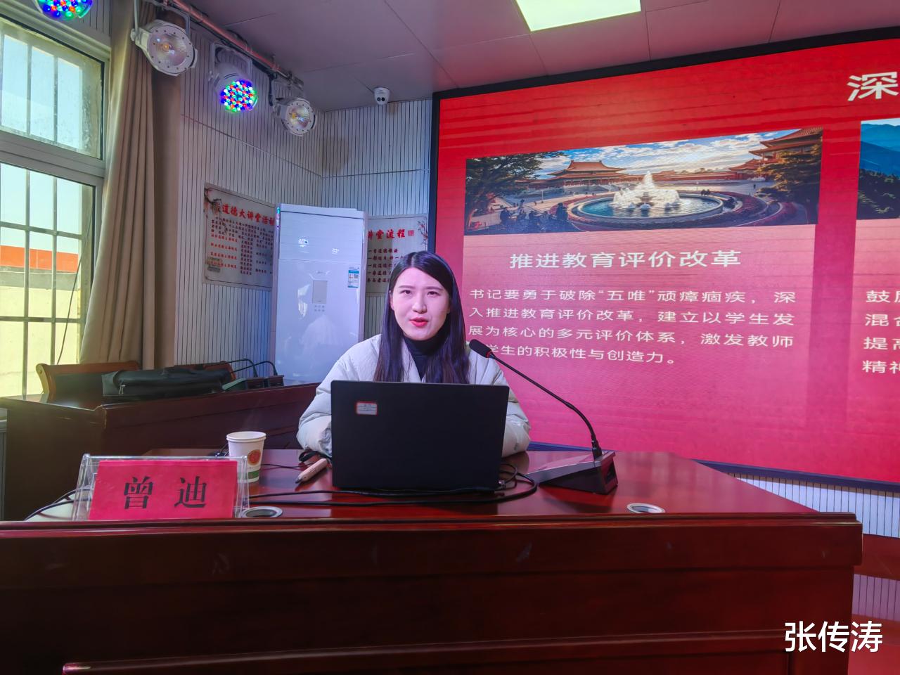本网南阳1月8日讯(《人民视点》记者 张传涛通讯员张燚徐红方)为统一思想、凝聚力量,明确新时代教育发展方向。1月7日下午,河南省南阳市城乡一体化示范区白河教育党总支部委员会举办了党的二十届四中全会精神专题宣讲会,该市“百姓宣讲团”成员曾迪应邀做专题讲座。