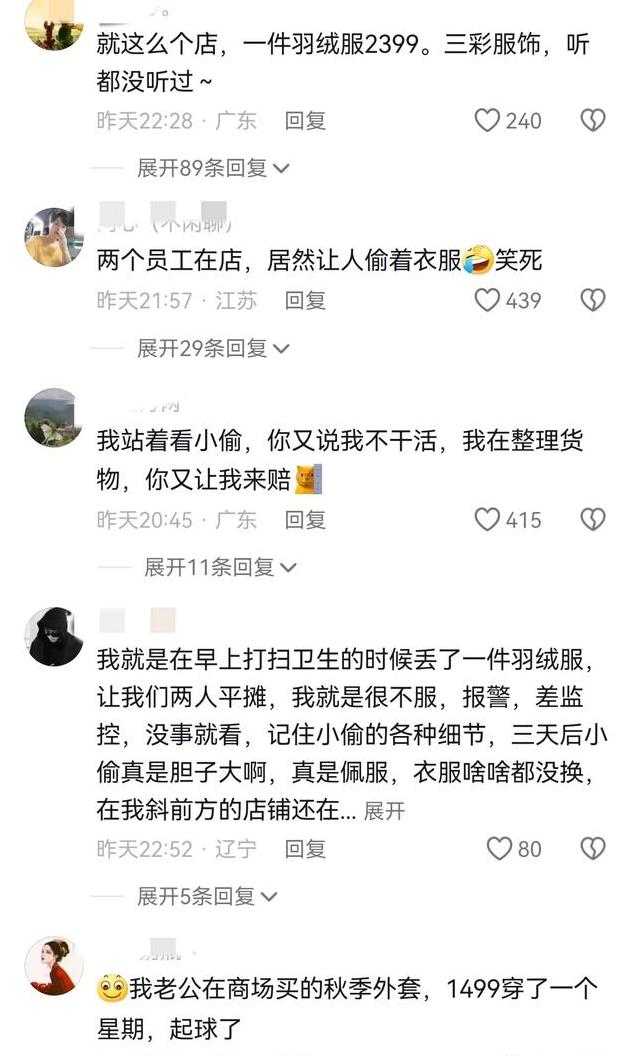 网友称两个员工在店里,居然让人偷了衣服,笑死了。