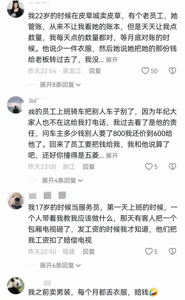 网友称之前自己卖男装,每天都会丢衣服,赔钱。