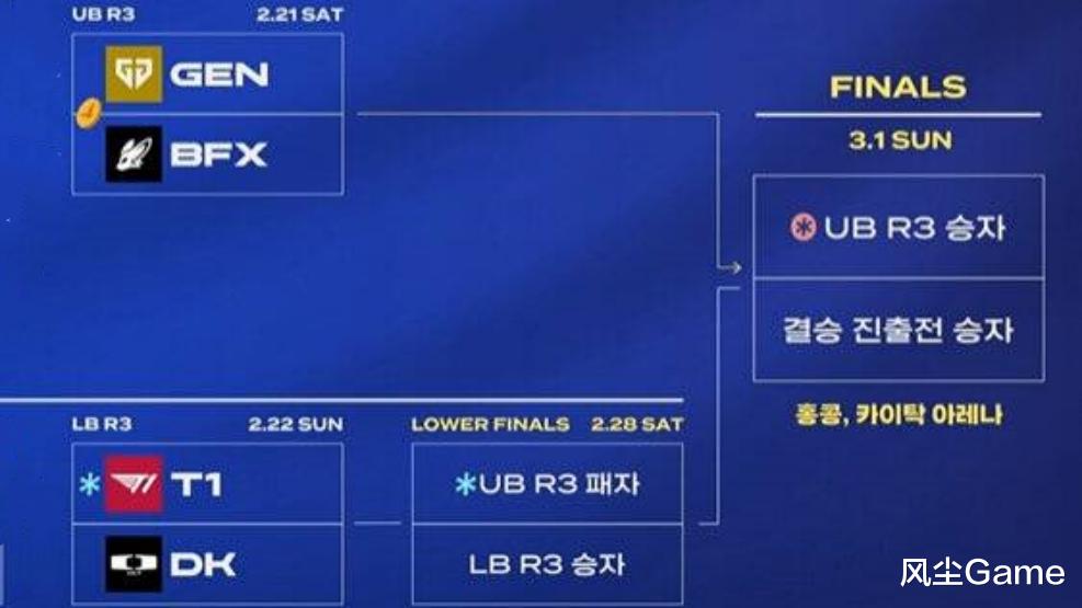 DNS被淘汰之后,LCK季后赛只剩四支队伍了,胜者组GEN和BFX,败者组DK和T1,这两场BO5,感觉悬念都不是很大,GEN作为内战幻神,联赛内几乎是无敌的,BFX虽然是黑马,但赢GEN的可能性还是很低,不出意外的话,BFX也会跌入败者组,跟DK和T1的胜者,争夺决赛名额。