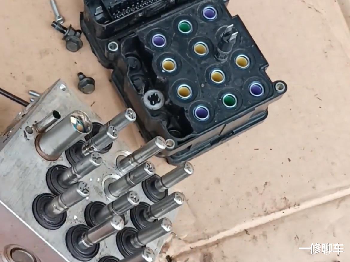 还有第四个ABS泵,是负责我们车辆的刹车性能的,这个配件也很容易找到,一般都是安装在靠近防火墙的位置,上面有很多刹车油管,价格非常贵,从普通车型到高端车型,几千上万的都有,它坏了以后,我们车辆在可能会出现刹车软、刹车跑偏和报侧滑故障灯。