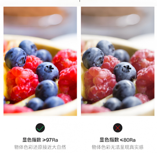 显色指数(Ra)衡量光线还原物体真实颜色的能力,越接近Ra100,显色效果越真实。高显色指数的台灯能更准确呈现物体颜色,提高辨色能力,减少视觉疲劳,对孩子绘画、作业等细节作业尤其重要。