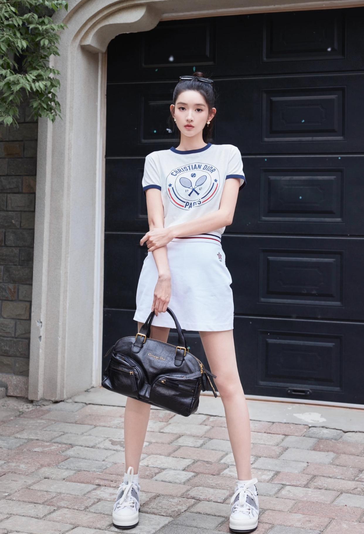 如果穿上白色,搭配白色裙裤,将衣摆塞进裙腰中凸显高腰线。像王玉雯身穿白色印花网球衫与同色系迷你短裙,增加造型质感,展现出运动又时尚的气质,时髦高级。