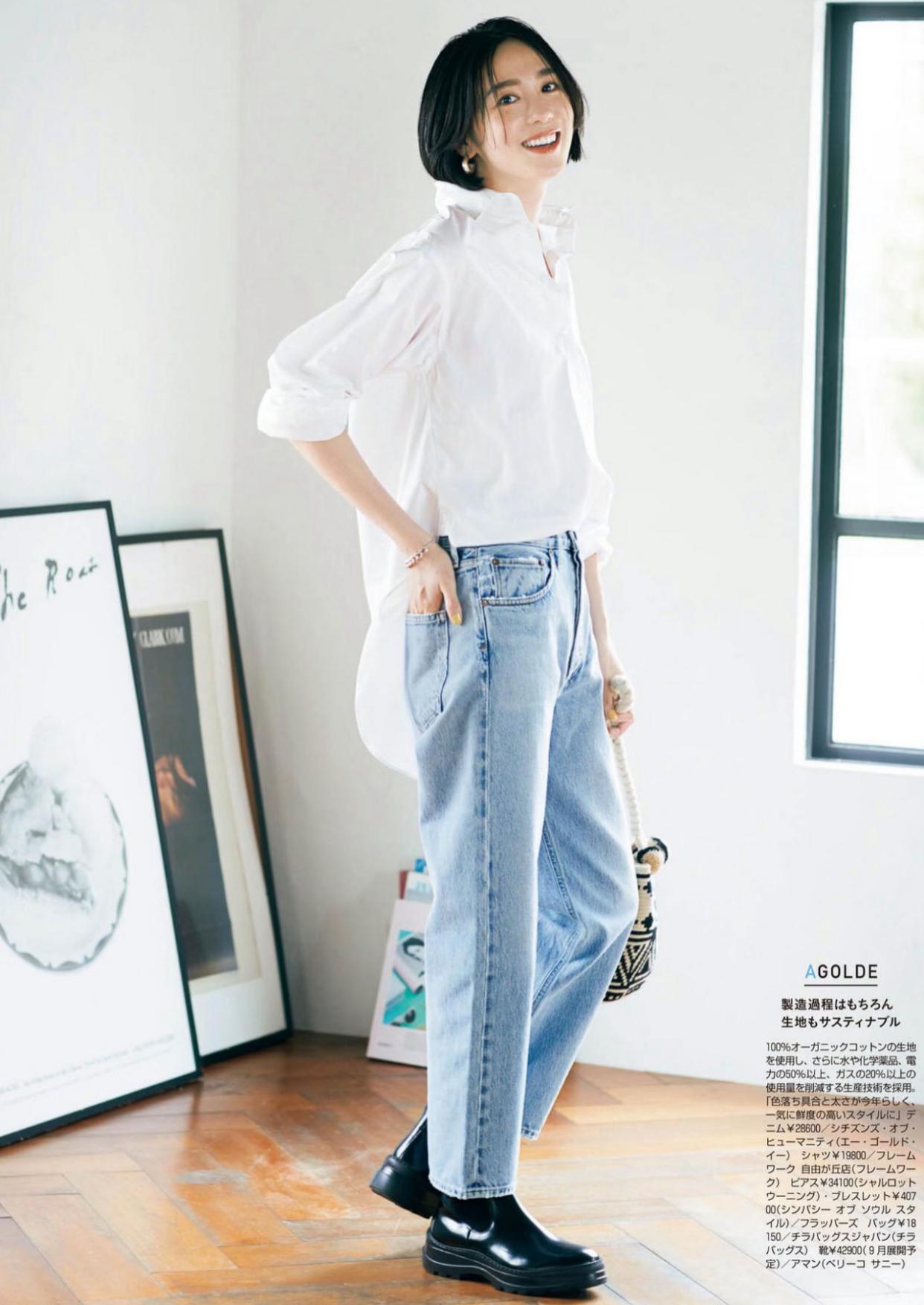 在职场穿白色,搭配很重要,如果对于不是要求正装的办公环境,白衬衫可以搭配牛仔裤。