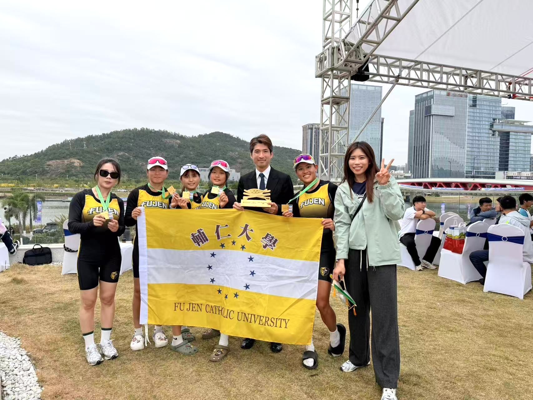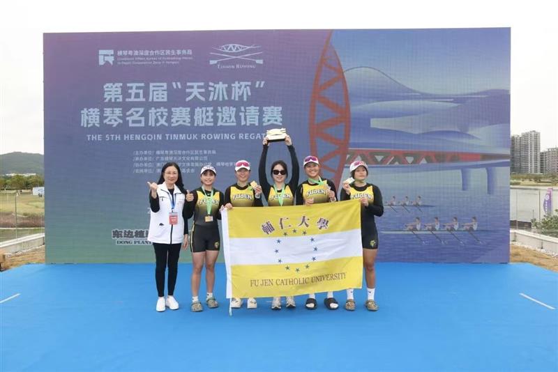 女子四人双桨有舵手组别冠军——辅仁大学颁奖