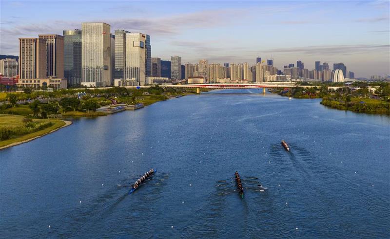 本届赛事在横琴粤澳深度合作区天沐河设置全长1400米的赛道,串联起沿途两岸的特色景观,展现横琴现代化、国际化的城市风光。“天沐杯”横琴名校赛艇邀请赛自2019年首次举办以来,持续吸引国际名校加入,知名度、影响力不断提升。
