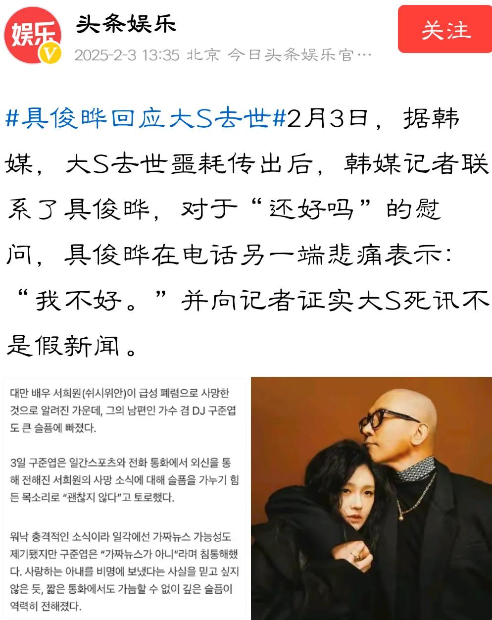 大S的离世在我们看来是很突然的。但对具俊晔和大S的家人来看并不突然,这中间经历了漫长的过程。