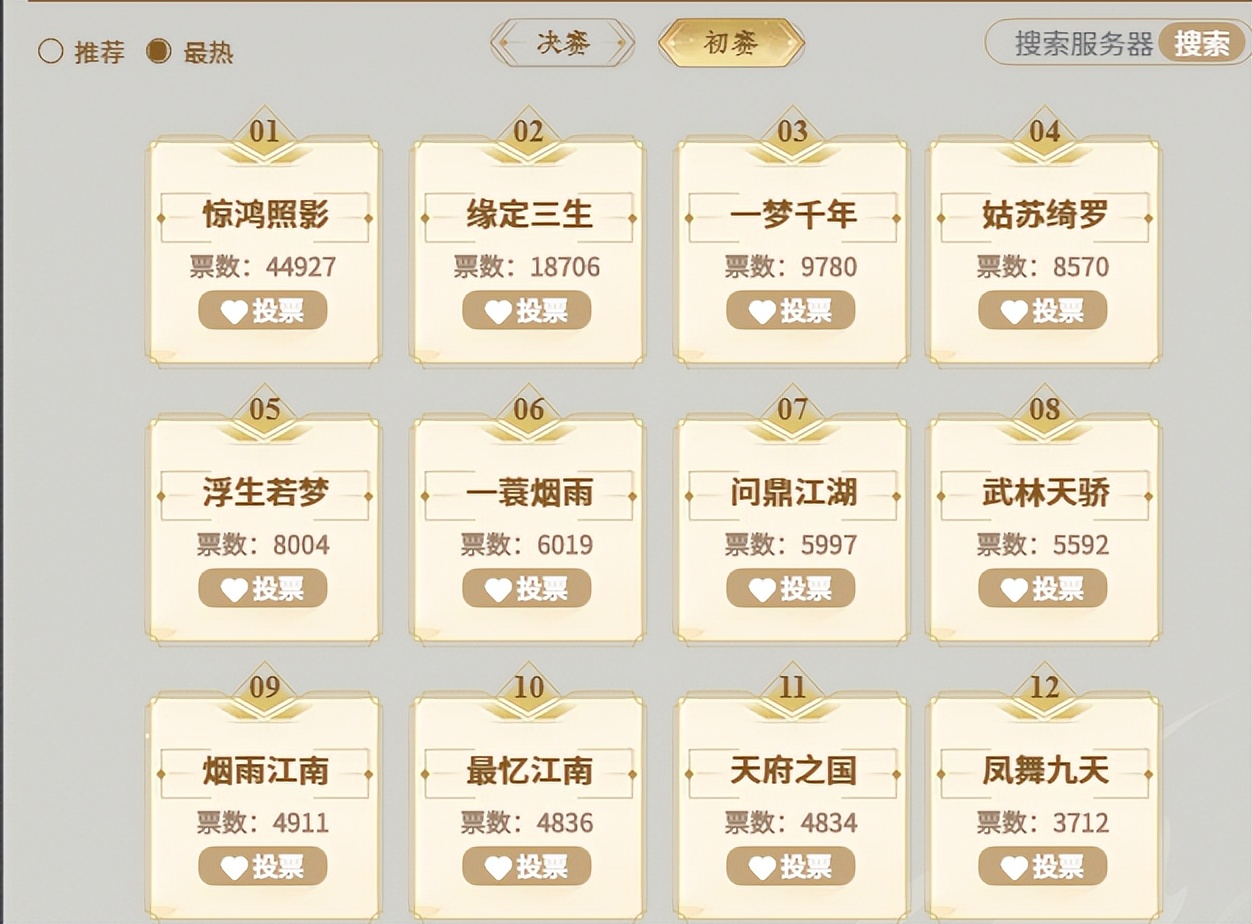 更有意思的是69争鸣服的命名将由玩家投票诞生,这些备选的服务器名全都是四年前消失掉的服务器,玩家不仅可以每天投票获取奖励,甚至还能成为服务器代言人,为复活自己的服务器拉票。