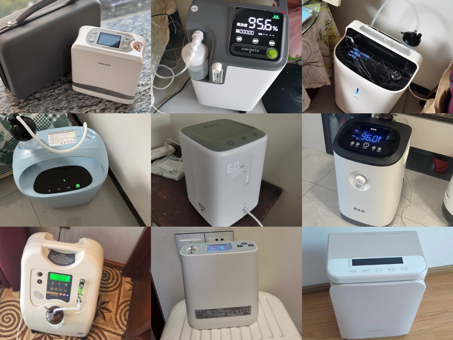 (下图展示了部分经过实际评测的制氧机产品)