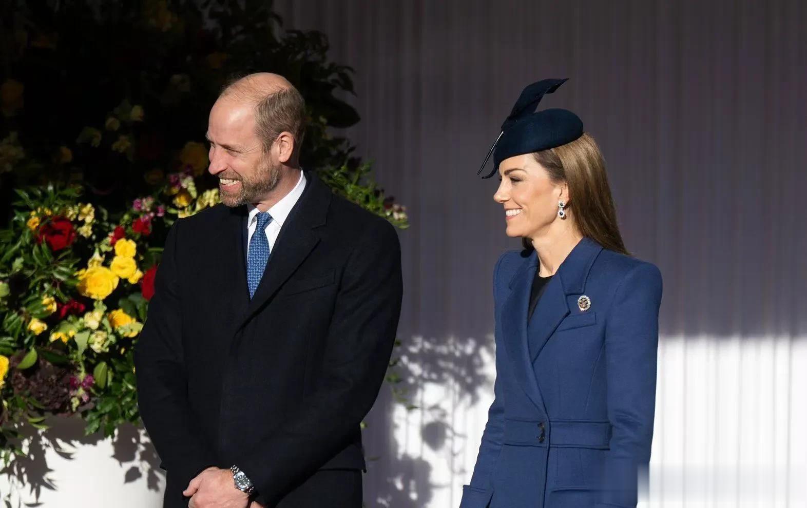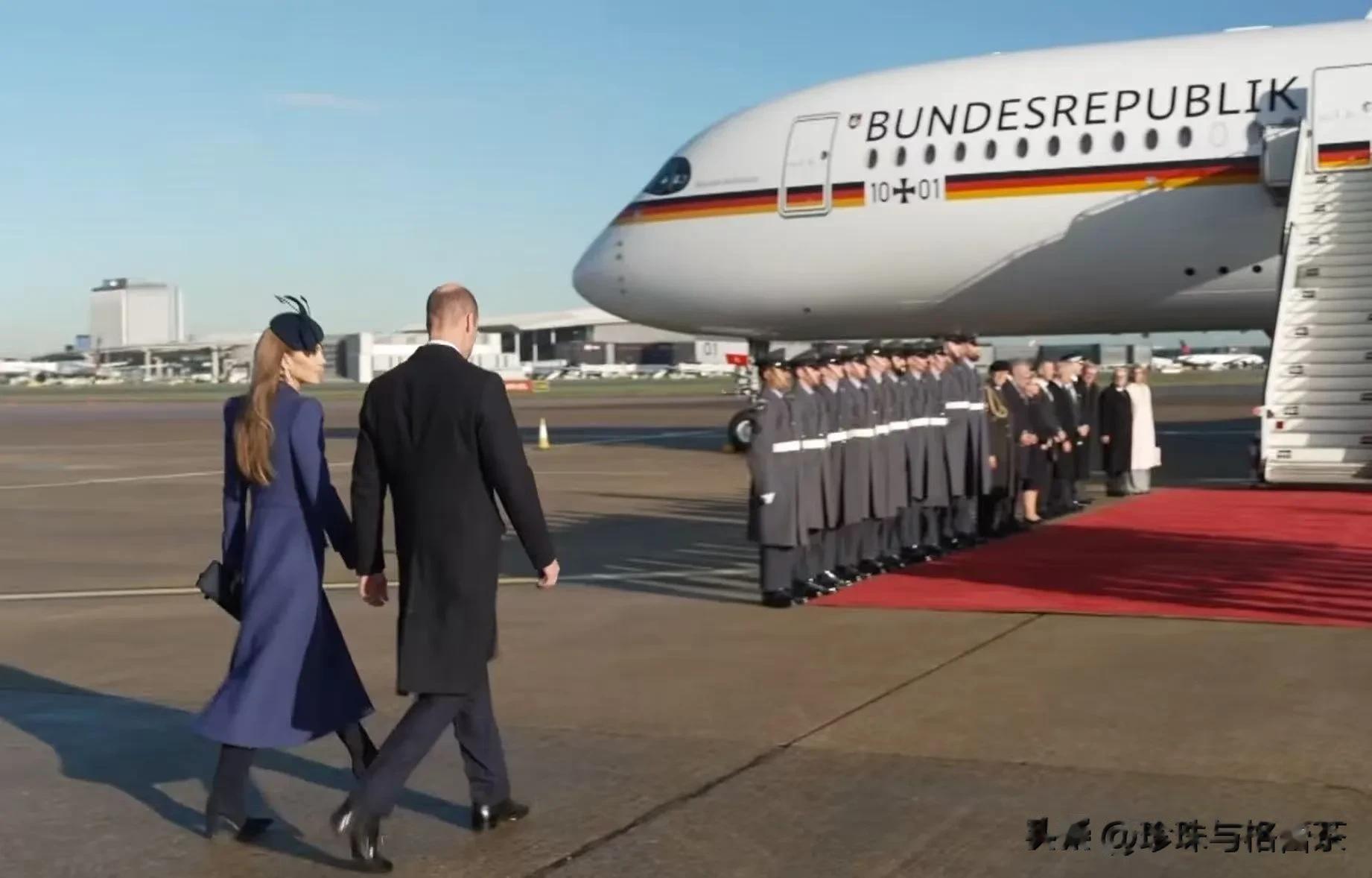 12月3日上午,威尔士亲王威廉和妻子凯特一起来到伦敦希斯罗机场,他们代表国王查尔斯三世迎接到访的德国总统夫妇。