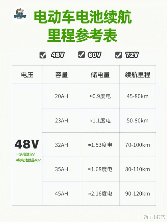2、48V32AH的电池,理论续航为80公里,48V42AH的电池,理论续航为100公里。
