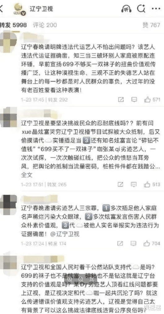 不仅阅读互动量惊人连带着辽视春晚的账号都被抵制评论淹没,搞得官方不得不说暂时关闭评论区,主打的就是一个:俺不中咧。