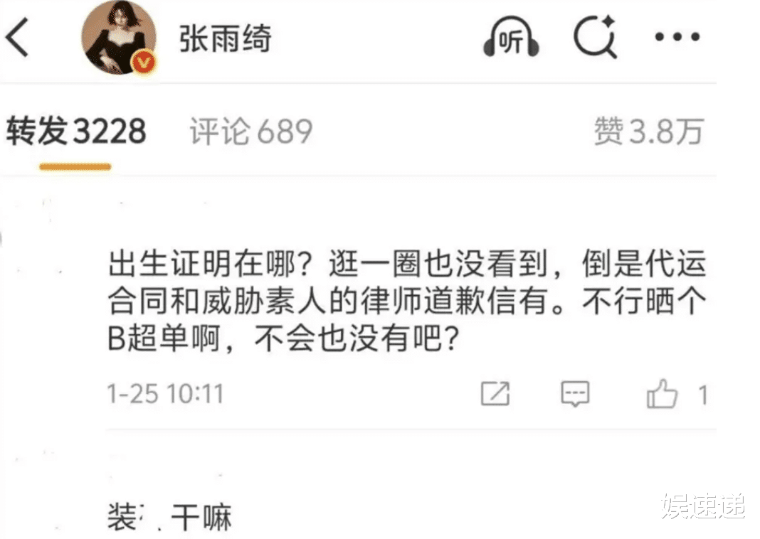 目前张雨绮的团队依旧潜水,既没回应雇佣律师质疑,也不硬刚插足代孕争议,唯一的操作可能就是删帖控评了。