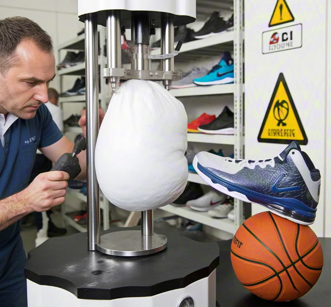 "砰砰砰砰砰"小王的篮球鞋在变向突破时突然爆裂,气垫碎片打破球袜的一瞬间,整个球场都安静了。这位高校球队队员怎么也没想到,花了自己半个月的生活费买的限量款战靴,竟然这么快就要退役了。这样的场景并不是个例,在社交媒体上有关气垫爆炸的吐槽视频已累计已经上亿条,有的人被打破脚踝淤青甚至还得缝针。这些看起来很玄乎的气垫到底是运动神器还是定时炸弹?带着这个疑问走进某运动科技实验室。白大褂的工程师李博士正在调试压力测试机,这台可以测试人体重量十倍压力的机器,将对五款主流篮球鞋进行暴力测试,很多人觉得气垫软,其实这是一个错误的认知。"李博士边调整传感器边解释,这个不能像吹气球,吹得太大,越容易爆,压力值越大气垫越危险。