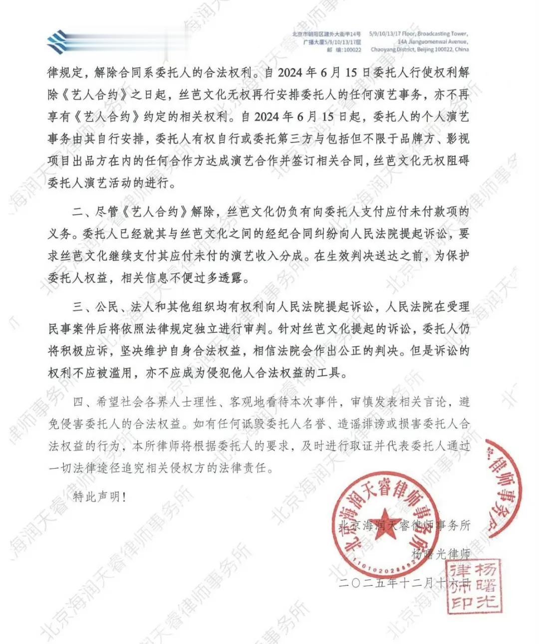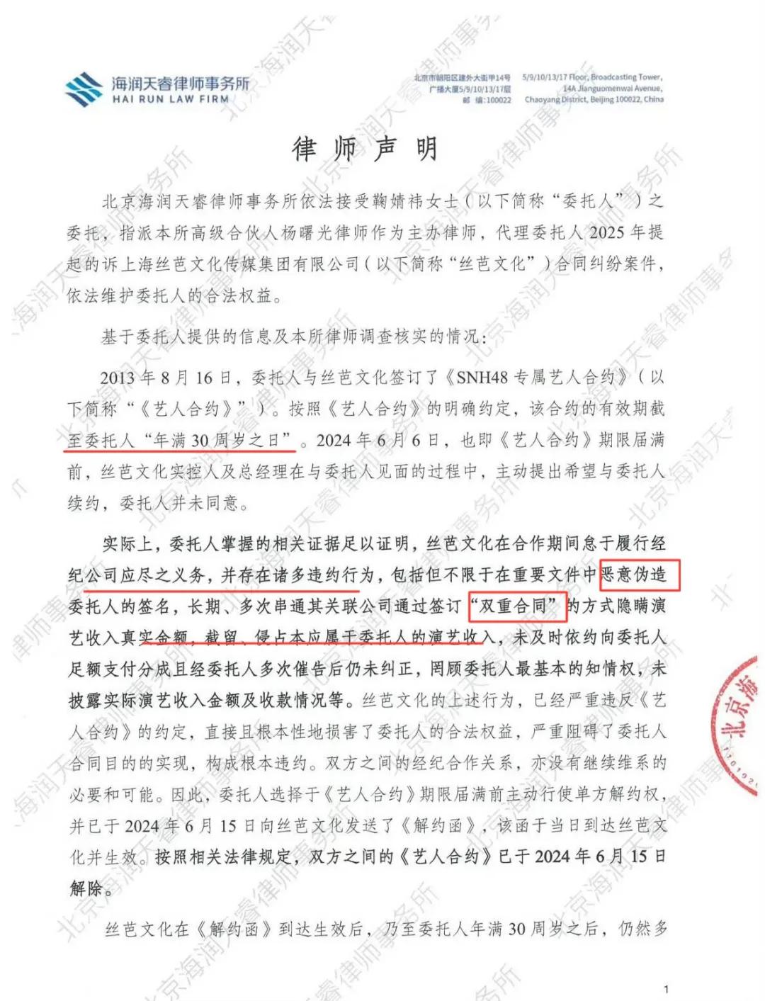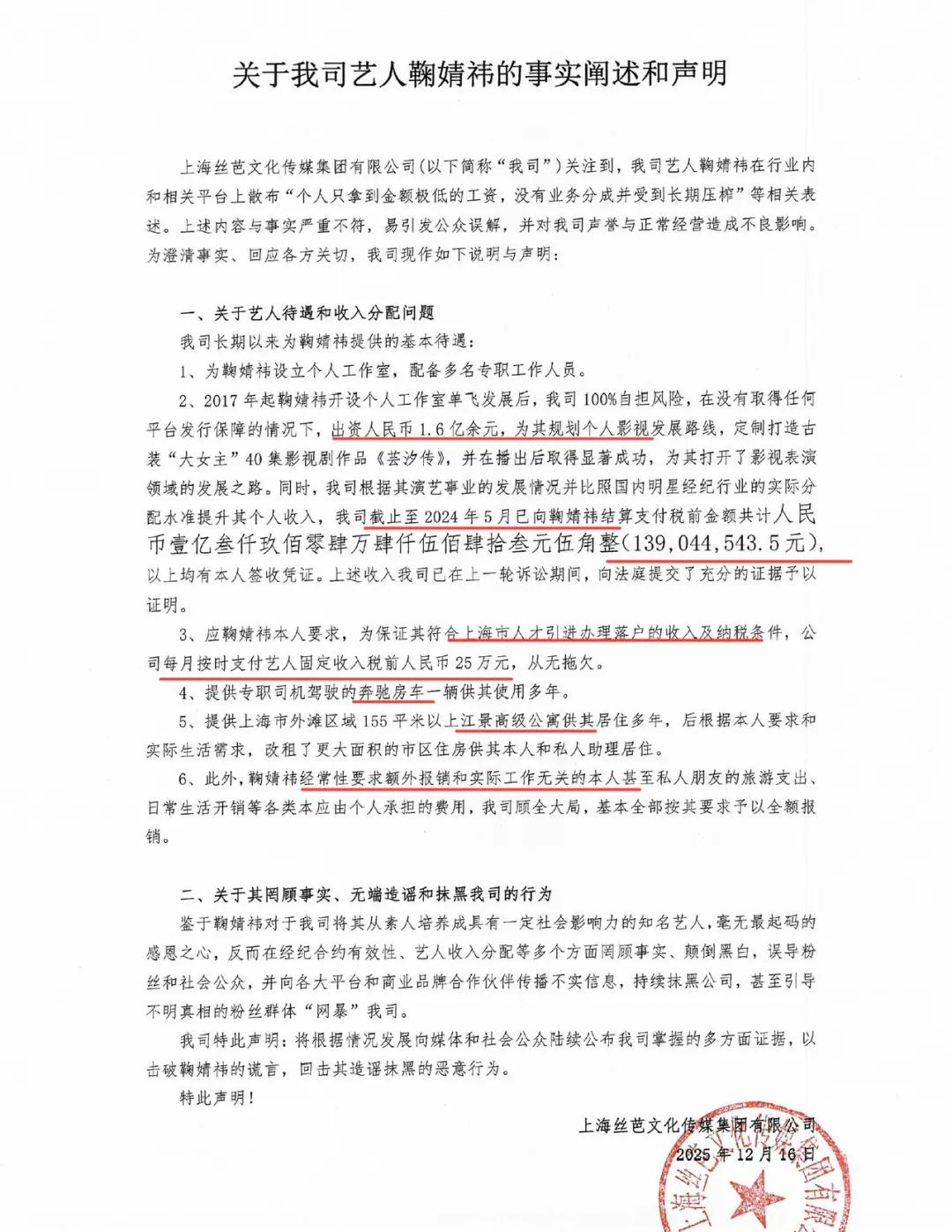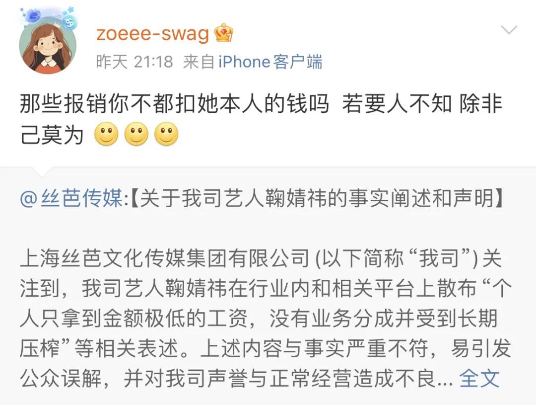 面对鞠婧祎方的指控,丝芭传媒也发布了声明回应。