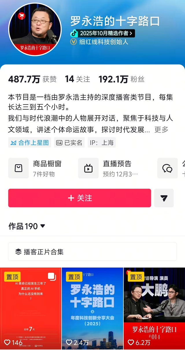 8月他还开了播客《罗永浩的十字路口》,和许多行业大佬深度对谈,聊创业、聊失败、聊人生。