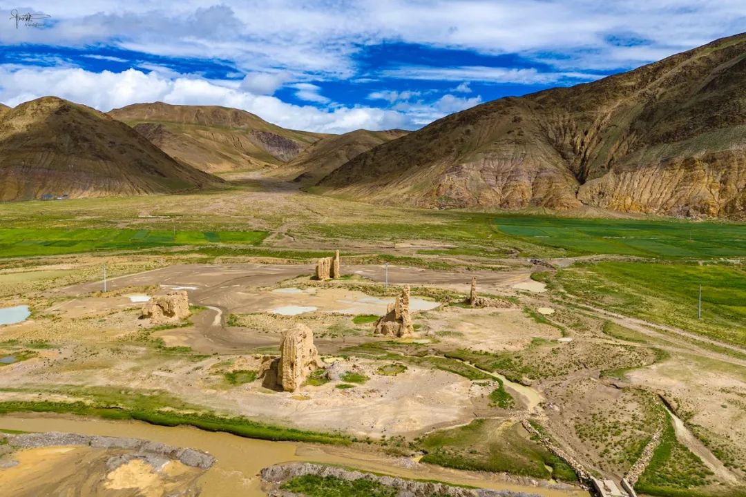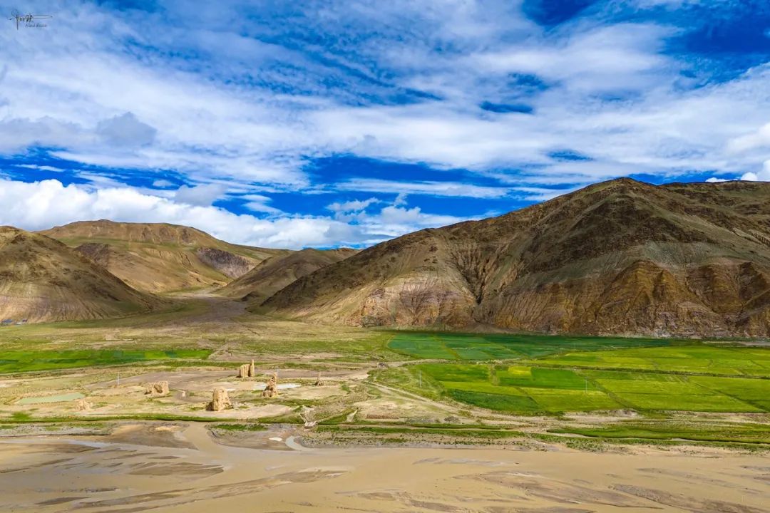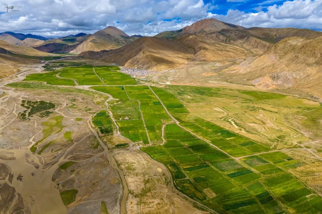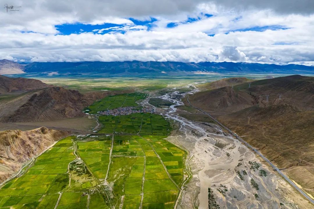 当然,和216、219动辄上百公里或数百公里的无人区不同,每隔几十公里,路边就会出现一个规模不大的小村庄。有趣的是在它们的周围,一般都有长势不错的青稞地环绕,绿意葱茏生机盎然的画面跟四周环境格格不入,所以自驾爱好者和游客大老远就能察觉和明白,离人类聚居的地方已经不远了。