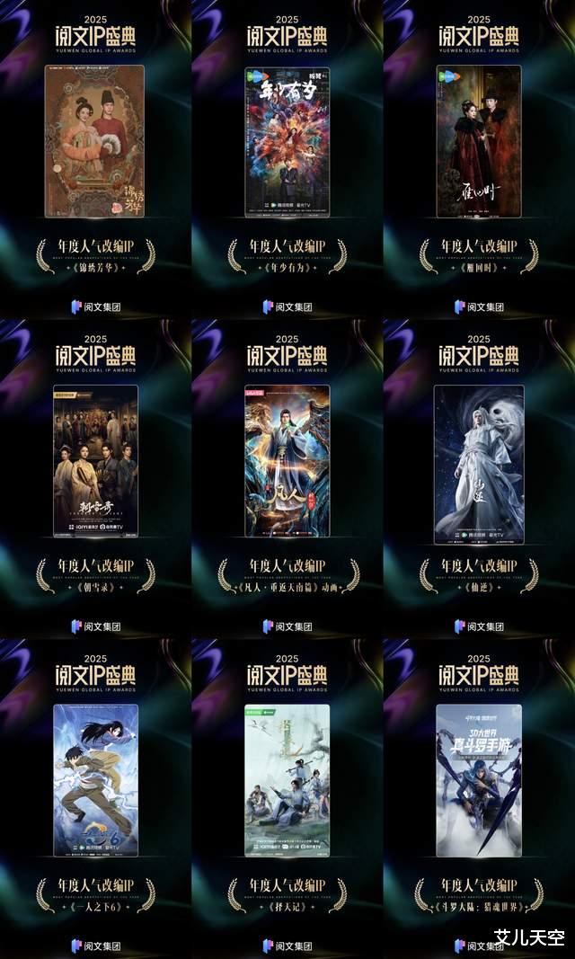 今天没什么特别的,就是关注了一下今晚在澳门进行的2025阅文IP盛典,简单搬运一下盛典的颁奖情况。