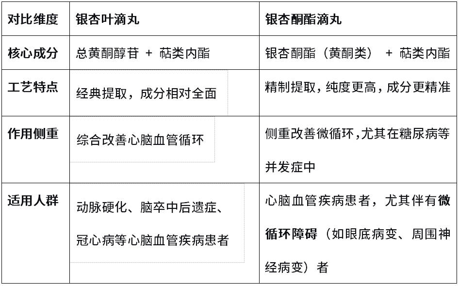 “小异”在于银杏酮酯滴丸在工艺上更精纯,在改善微循环方面可能更具针对性。