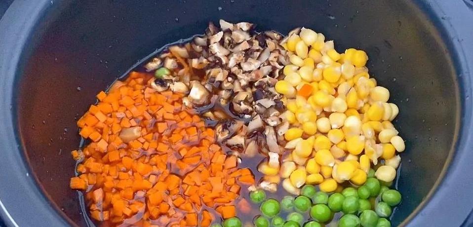 她继续翻出更多食材,豌豆、玉米、胡萝卜等都在厨房里现身。