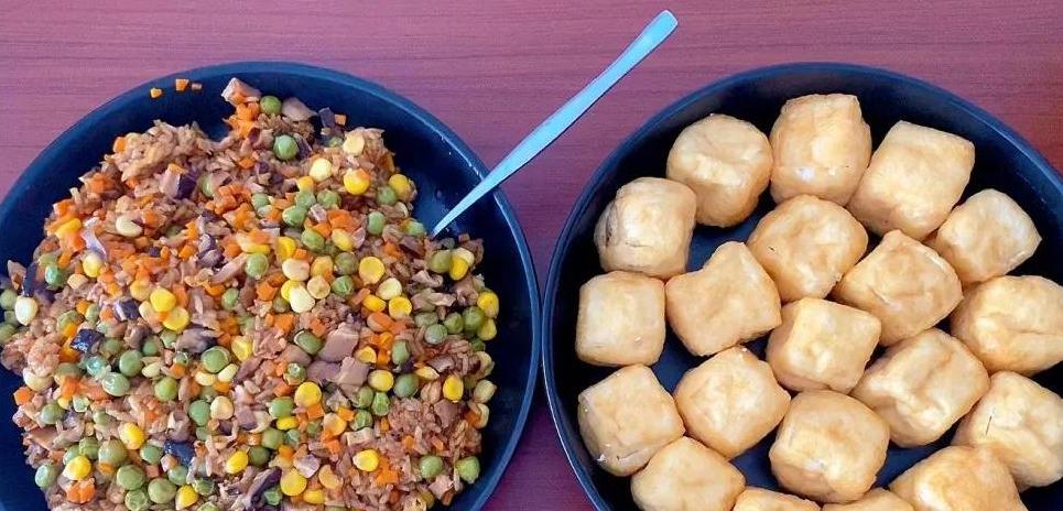 小李满意地看着满满一盘油豆腐米饭,再放入蒸锅中,十分钟后,香气扑鼻而来。