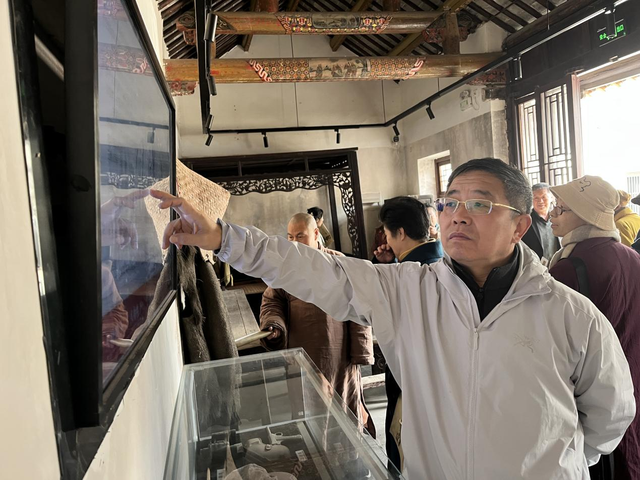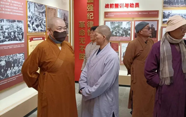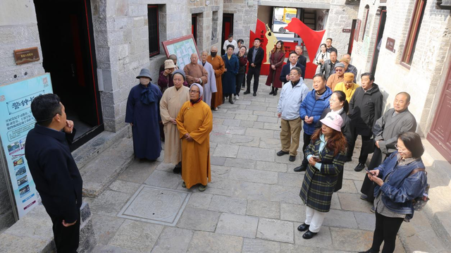 来自铜山区各佛教场所负责人及民间信仰场所负责人一行30多人,在气势恢弘的百年古建筑群——位于江苏省徐州市铜山区汉王镇北望村的郝家大院,由汉王望族郝家在19世纪初兴建,院中三进房屋依山而建,厚重的大门背后,隐藏着一段鲜为人知的红色历史。大家认真聆听着讲解员关于发生在1949年2月到4月,邓小平、刘伯承、陈毅、栗裕、谭震林等老一辈革命家在此指挥渡江战役的故事。