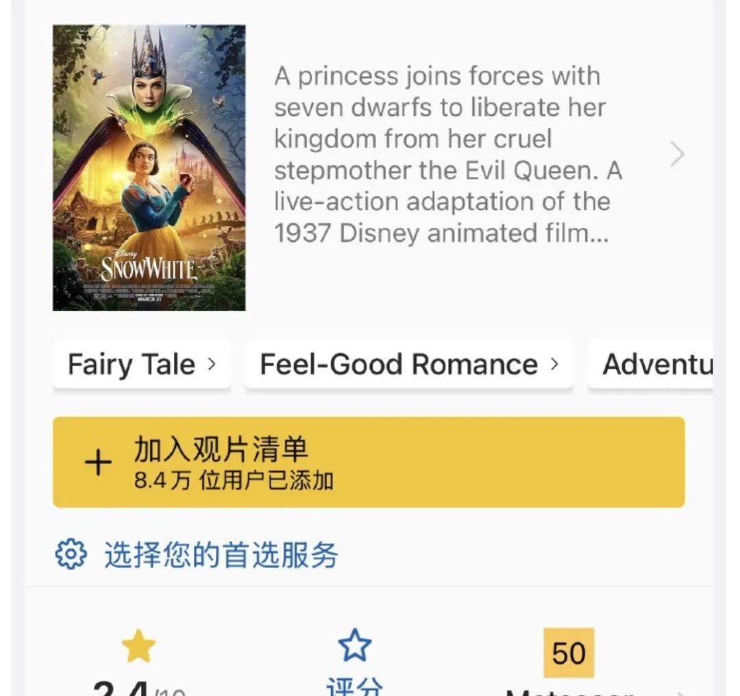 迪士尼的真人版《白雪公主》上映后,票房表现令人大跌眼镜。