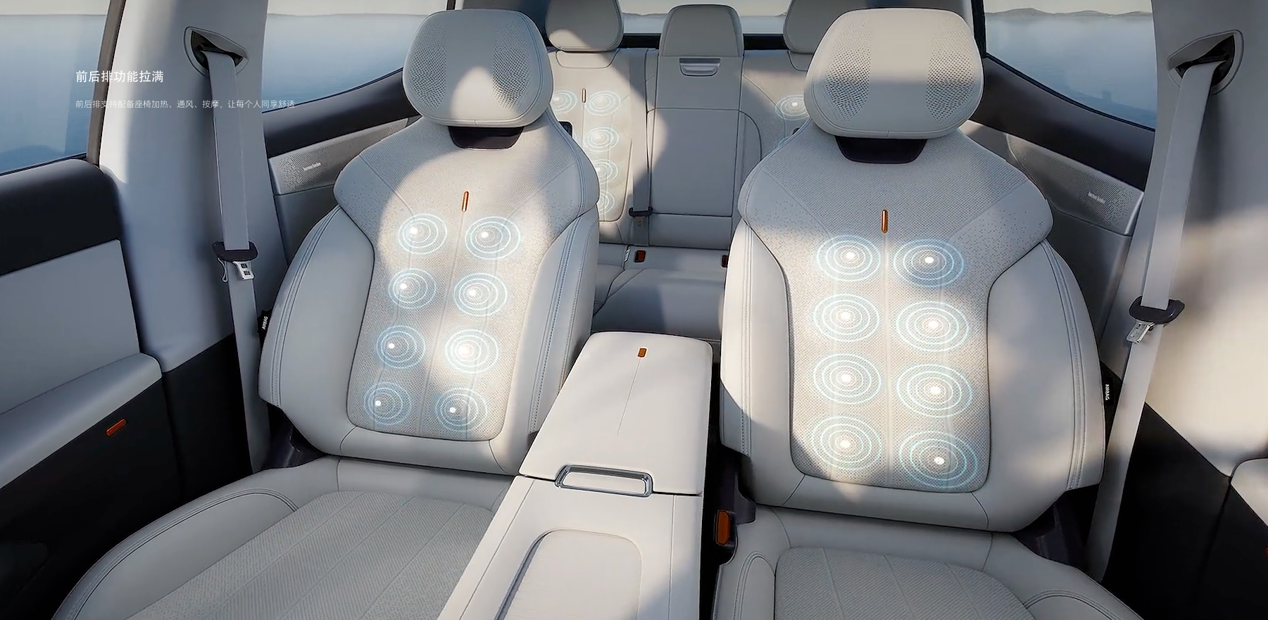 白调和灰调的内饰搭配主动式环境氛围灯,车内氛围感拉满。